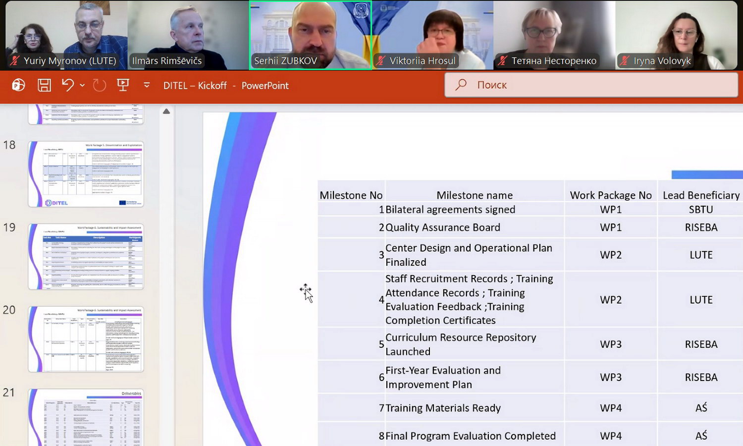 During the meeting, the expected results, the structure of the work packages, and the role of each university in the implementation of the project were discussed in detail. Considerable attention was paid to issues of management, communication, financial reporting, and quality assurance. Representatives of LUTE joined the discussion of their tasks within the work package related to the creation and equipping of Centers for Innovative Learning and Research, which is one of the key elements of the overall project strategy.